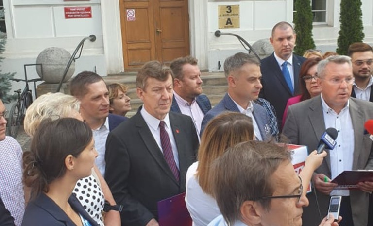Kandydaci z listy Lewicy w okręgu 4, m.in. Krzysztof Gawkowski, Jan Szopiński, Michał Wysocki,