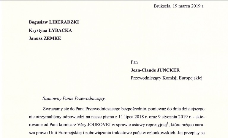 19 marca 2019 r. troje europosłów SLD – Bogusław Liberadzki, Krystyna Łybacka oraz Janusz Zemke – wystosowało pisma do przewodniczących Komisji Europejskiej Jean-Claude Junckera oraz Fransa Timmermansa, informując ich ...